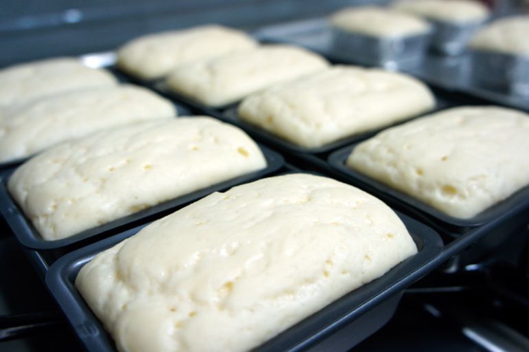 Untar as formas e reservar. Na tigela da batedeira colocar a margarina, os ovos, o açúcar, a farinha preparada, o fermento e a água. Misture tudo primeiro com uma espátula, e depois bata na batedeira, na velocidade média até a massa ficar uniforme. Nesse ponto aumente a velocidade um pouco e bata por 3 a 4 minutos. Coloque a massa nas formas untadas e deixe descansar por no mínimo 30 minutos. Asse em forno médio, pré-aquecido por mais ou menos 30 a 40 minutos. Se for congelar os pães, espere esfriar bem.