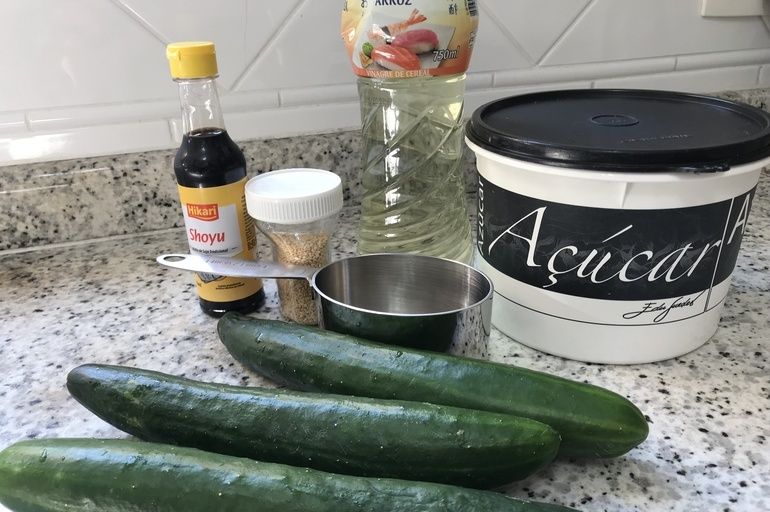 Eu costumo fatiar o pepino bem fininho e tempero com shoyu, fica top também Se só com shoyu fica bom, imagino com esse molho, vou fazer